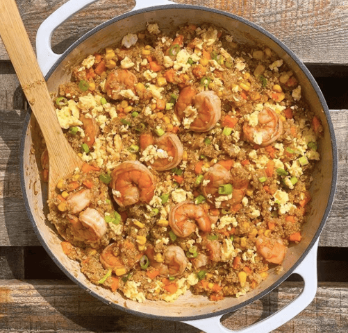 Si quieres hacer la quinoa de una forma diferente y super rica, aquí te tengo la solución: "arroz frito" de quinoa y camarones. Hacer el plato completo me tomó 15 minutos🤩, incluyendo picar los veggies, porque ya tenía quinoa cocinada en la nevera para armar cualquier plato rápido #protip. Pero sino puedes poner la quinoa a cocinar, un playlist chulo, cortas tus vegetales con calma y arrancas a cocinar cuando la quinoa esté lista, y aún así no pasará de 25-30 minutos antes de que tengas un plato super rico y saludable en su mesa. Así que... ¡anímate y déjame saber qué te parece este tipo de recetas!